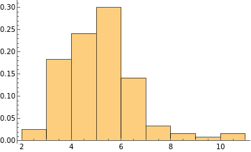 r1=RandomVariate[ParetoDistribution[4,1.5],20];r2=RandomVariate[NormalDistribution[5,1.2],100];h1=Join[r1,r2];