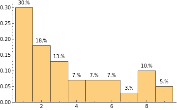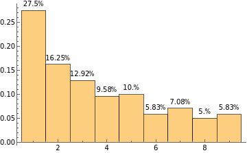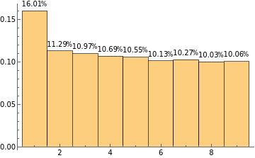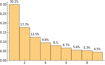 Curiously, the pattern seems to return. Is there a reason behind all this? The answer is Benford’s law.