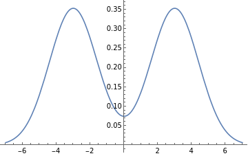 Plot[ftGaussCos,{ω,-7,7}]