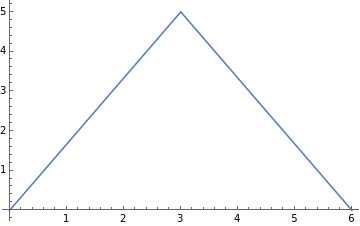 Plot[Piecewise[{{(5/3)x,x<3},{10-(5/3)x,x>3}}],{x,0,6}]
