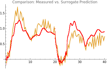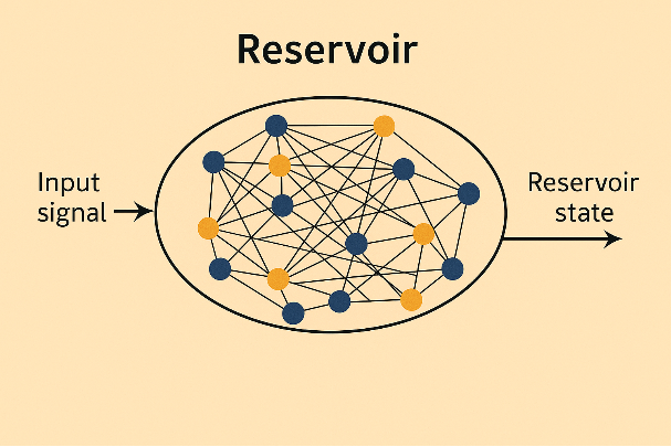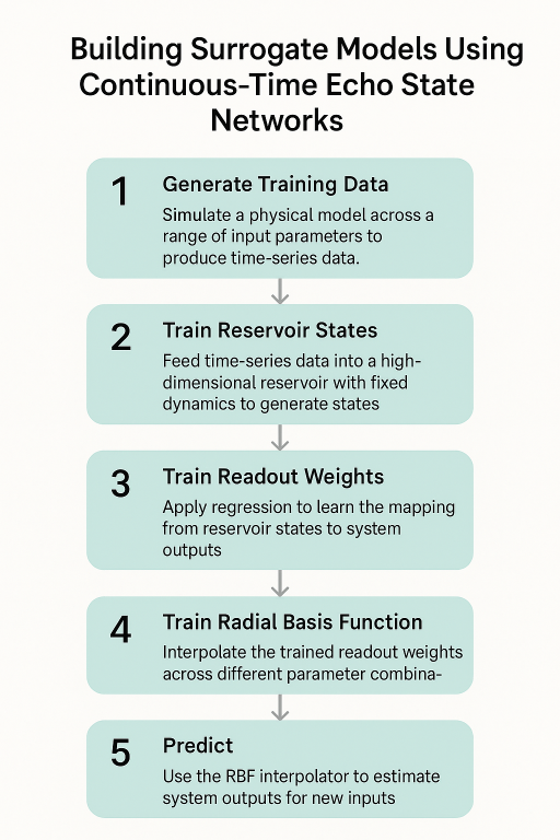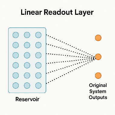 reservoirState[ypStarInterpolant_,tpStar_,timeSim_,reservoirSize_]:=Module[{reservoirDims,density,A,V,r0,dr,drTrain,data,rData,rTrainData,timeStepSize,numSimSteps},(*1.Setbasicdimensionsandsparsity*)reservoirDims=reservoirSize;density=0.01;numSimSteps=2000;timeStepSize=timeSim/numSimSteps;(*2.Createsparsesymmetricpositivedefinitematrix*)A=Normal@ResourceFunction["RandomSparseSPDMatrix"][reservoirDims,"CholeskyFactorDensity"->density];(*3.Randominputweights*)V=RandomReal[{0,0.5},{reservoirDims,First@Dimensions[ypStarInterpolant]}];(*4.Initialreservoirstate*)r0=ConstantArray[0,reservoirDims];(*5.Reservoirupdatefunction*)dr[r_,i_]:=Tanh[A.r+V.ypStarInterpolant[[All,i]]];(*6.Timeevolutionofreservoir*)drTrain[r_]:=Module[{length=Length[tpStar],rTrain=ConstantArray[0,Length[tpStar]],rNew=r,time=0},Table[rTrain[[i]]=rNew;rNew=dr[rNew,i],{i,1,length,1}];{tpStar,Join[rTrain,Transpose[{ConstantArray[1,Length[rTrain]]}],2]}];(*7.Interpolatethestates*)data=drTrain[r0];rData=Interpolation[DeleteDuplicatesBy[Transpose[{data[[1]],Transpose[data[[2]]][[#]]}],First],InterpolationOrder->2]&/@Range[reservoirDims+1];(*8.Uniformsamplingofstates*)rTrainData=Table[Through[rData[t]],{t,0,timeSim-timeStepSize,timeStepSize}];rTrainData]