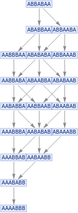 Sort the string “ABBABAA” in alphabetical order using string rewriting rules {“BA” “AB”,”ABA” “AAB”}