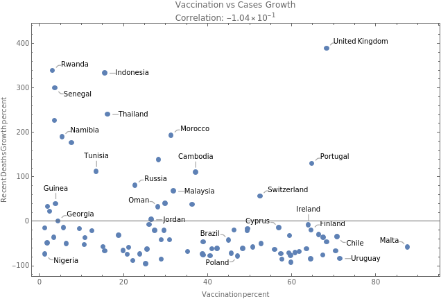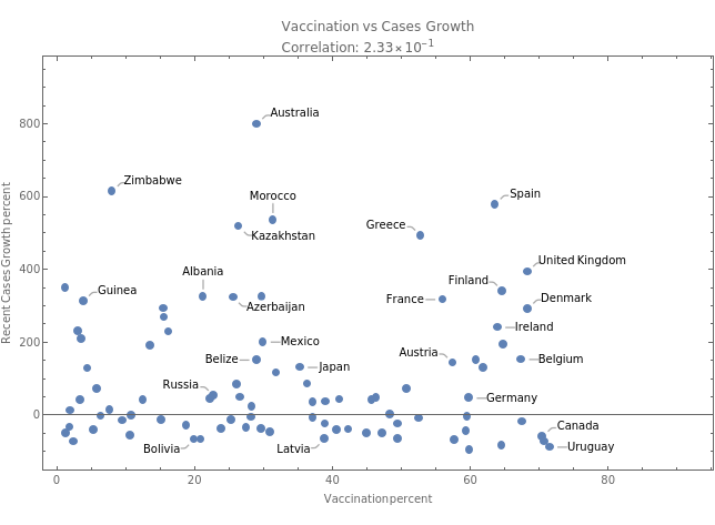 country | vaccinationpercent | casesgrowratepercent | plot | ||