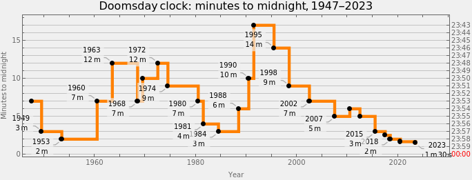 1 | command: | doomsday clock is reading 2 seconds to midnight |