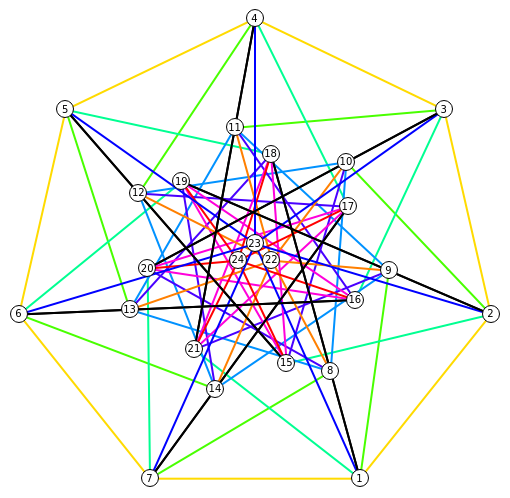 And while working on this with Michael, I noticed that connecting the extraordinary lines in the graph and connecting to the {7/1}, {7/2} and {7/3} star polygons would make the Klein graph.