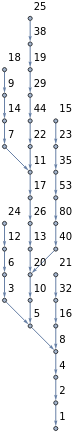 {25,38,19,29,44,22,11,17,26,13,20,10,5,8,4,2,1}