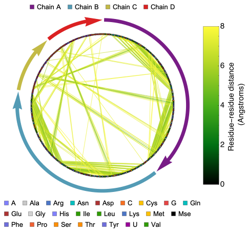 Introducing the Wolfram ProteinVisualization paclet! Delve into the fascinating world of biomolecular structures with this state-of-the-art tool. Designed for researchers, educators, and structural biology enthusiasts alike, our paclet offers an immersive experience for visualizing the intricate structures of biomolecules, including proteins, nucleic acids, and their complexes. Explore the elegant geometry of molecular backbones, amide planes, and more with captivating 3D graphics. Go deeper into the world of structural biology by computing and visualizing key features such as contact maps and dihedral angles. Whether you’re analyzing protein structures, studying nucleic acid interactions, or simply marveling at the beauty of nature’s molecular machines, our paclet empowers you to see biomolecules in a new light. Experience the wonder of biomolecular visualization - get started with our paclet today!