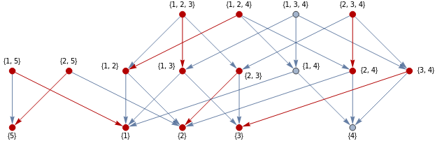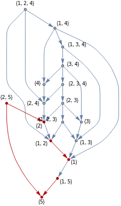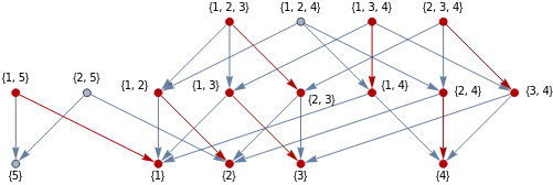 S={{1},{2},{3},{4},{5},{1,5},{2,5},{1,3},{1,2},{2,3},{1,4},{2,4},{3,4},{1,2,3},{1,3,4},{1,2,4},{2,3,4}};HighlightMesh[MeshRegion[{{0,0,0},{1,0,0},{0,1,0},{0,0,1},{0,0,2}},{Line[{5,1}],Line[{5,2}],Tetrahedron[{1,2,3,4}]},MeshCellStyle->{{1,All}->Red}],Labeled[0,"Index"]]