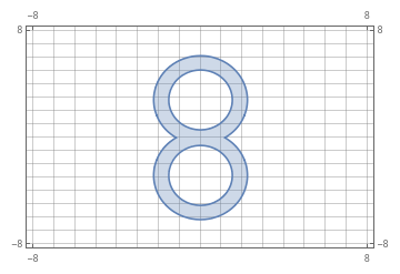 I slightly modify some parameter and use RegionPlot to plot a solid version of number 8. Similarly, the following code use only number 8. In total 32 eights, which a nice multiple of 8.