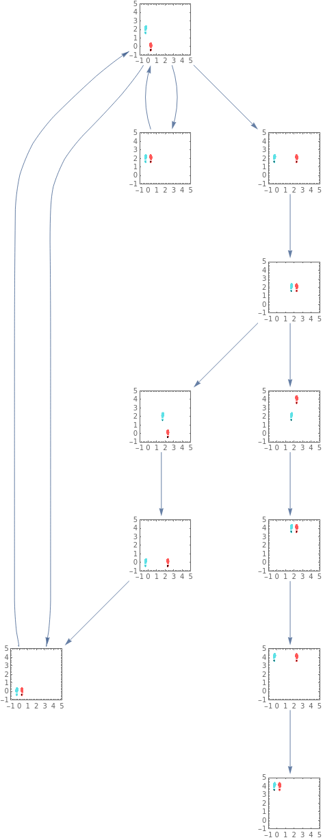 Row[{Graphics[{Inset[leftF,{-0.3,0},Automatic,0.5],Inset[rightF,{0.3,0},Automatic,0.5]},PlotRange->{{-1.5,4},{-1,4}},Frame->True,AspectRatio->Automatic],Graphics[{Inset[leftF,{-0.3,2},Automatic,0.5],Inset[rightF,{0.3,0},Automatic,0.5]},PlotRange->{{-1.5,4},{-1,4}},Frame->True,AspectRatio->Automatic],Graphics[{Inset[leftF,{-0.3,2},Automatic,0.5],Inset[rightF,{2.3,2},Automatic,0.5]},PlotRange->{{-1.5,4},{-1,4}},Frame->True,AspectRatio->Automatic],Graphics[{Inset[leftF,{1.7,2},Automatic,0.5],Inset[rightF,{2.3,2},Automatic,0.5]},PlotRange->{{-1.5,4},{-1,4}},Frame->True,AspectRatio->Automatic],Graphics[{Inset[leftF,{1.7,2},Automatic,0.5],Inset[rightF,{2.3,0},Automatic,0.5]},PlotRange->{{-1.5,4},{-1,4}},Frame->True,AspectRatio->Automatic],Graphics[{Inset[leftF,{-0.3,0},Automatic,0.5],Inset[rightF,{2.3,0},Automatic,0.5]},PlotRange->{{-1.5,4},{-1,4}},Frame->True,AspectRatio->Automatic],Graphics[{Inset[leftF,{-0.3,0},Automatic,0.5],Inset[rightF,{0.3,0},Automatic,0.5]},PlotRange->{{-1.5,4},{-1,4}},Frame->True,AspectRatio->Automatic]}]