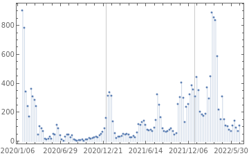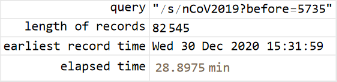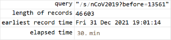 stopFlag=False;Echo[timeStart=Now,"start"];Module[{resp,xml,ds},While[!stopFlag&&earliest>DateObject[{2020,1,21,0,0,0.}],resp="t.me/s/nCoV2019"<>query//URLRead;If[Head[resp]=!=HTTPResponse,Return[resp,Module],If[resp["StatusCodeDescription"]=!="OK",Return[Failure["urlrd",resp["StatusCodeDescription"]],Module]]];xml=resp["Body"]//ImportString[#,"XMLObject"]&;ds=xml//pipe[ReplaceRepeated[XMLElement[t_,a_,d_]:>Inactive[Association]["tag"->t,"attr"->KeyMap[ToString,StringSplit[#,Whitespace]&/@Association[a]],"data"->d]],Activate,#〚2〛&,Dataset];query=ds["data",pipe[Select[#tag==="head"&],Flatten,First],"data",pipe[Select[#tag==="link"&],Select[MemberQ[#attr["rel"],"prev"]&]],pipe[#attr&,#href&]];ds[pipe["data",#〚1,1,1,1〛&,Apply@Join],tagSelector@"body","data",tagSelector@"main","data",classSelector@"tgme_container","data",classSelector@"tgme_channel_history","data",classSelector@"tgme_widget_message_wrap",pipe["data",#〚1,1〛&],;;,"data",classSelector@"tgme_widget_message_bubble",pipe["data",Thread],{pipe[classSelector@"js-message_text",First,"data",Cases[#,a_Association/;a["tag"]==="a",∞]&,Select[MatchQ[#data,{_String?(StringStartsQ["#"])}]&],Map[StringDrop[#data〚1〛,1]&]],pipe[classSelector@"js-message_footer",Cases[#,a_Association/;a["tag"]==="time",∞]&,First,"attr","datetime",First,DateObject]}]//Normal//(hashtags=Join[#,hashtags])&;earliest=hashtags〚1,2〛;Pause[3.]]]Echo[timeEnd=Now,"end"];