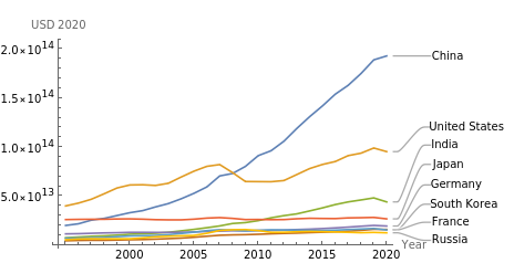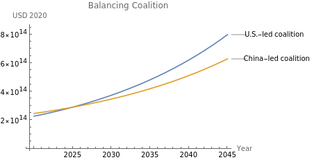 Projected power of coalitions led by the U.S. and China: U.S.-ledbalancing coalition |