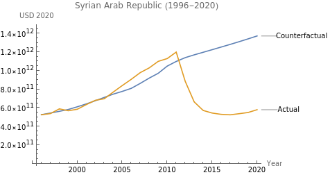 Predicted wealth of Syria had it not experienced civil war starting in 2011 |