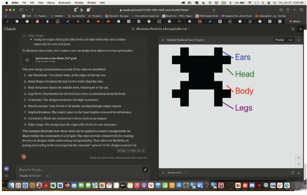GOAL OF THE PROJECT: Stephen Wolfram has tasked me with finding images of cats in cellular automata based on his essay, Generative AI Space and the Mental Imagery of Alien Minds, in which he explored the computational space around AI-generated images of cats in party hats.
