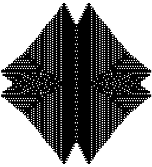 Are there cats in Cellular Automata? There are no cats in CAs. But just as there is a face on Mars and the Virgin Mary can appear on a piece of toast, we can see cats in cellular automata, and its not very hard to find CA that look cattish. Here is one we call Darth Kitty: