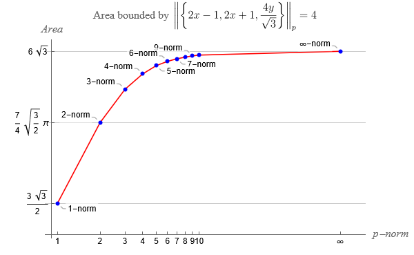 Compute the bounded area at 1-norm, 2-norm, and so on.