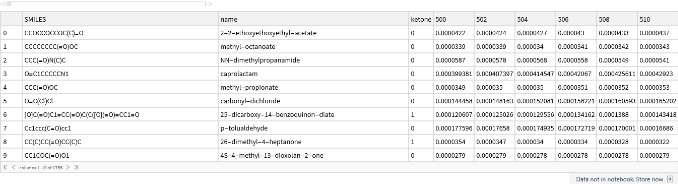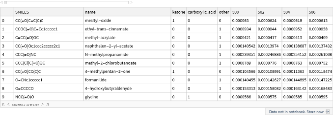 Notice that the training and test data contain the molecule name and label in addition to the spectral data. Our first task is to separate the information about whether or not the molecule contains a carbonyl (the attribute we want to predict, let’s call it “Y”) from the spectral intensities (the input features that we will use to make a decision, let’s call it “X”). We will also convert this into a form that is more amenable to machine learning analysis, where our goal is to find a function that describes Y = f(X). We begin by defining a function that splits the attributes and labels: