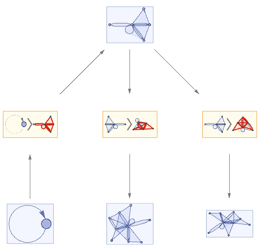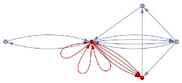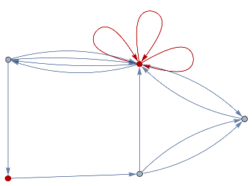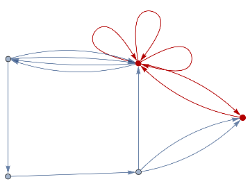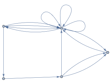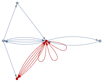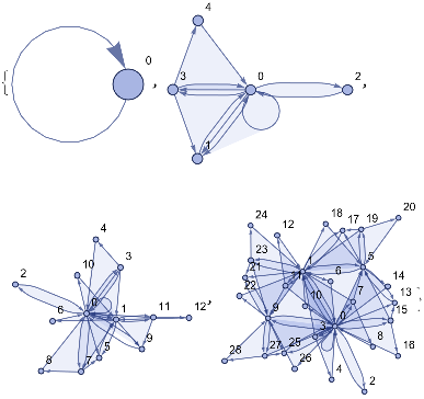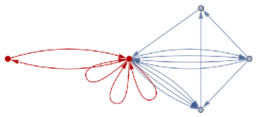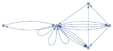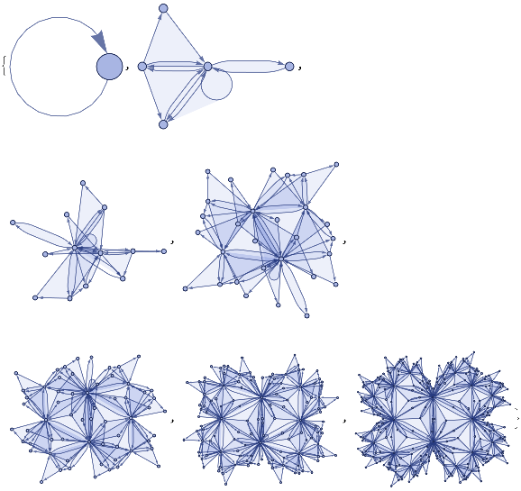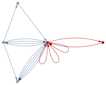 loopsToColourSpec[directedGraph_]:=Normal[Diagonal[AdjacencyMatrix[directedGraph]]]removeIlicitEdges[V_,E_]:=Graph[V,DeleteCases[If[ContainsAll[V,{#[[1]],#[[2]]}],#,Null]&/@E,Null],VertexLabelsAll]rewriteStep[L_,R_,G_]:=Module[{el=EdgeList[L],vl=VertexList[L],vg=VertexList[G],eg=EdgeList[G],er=EdgeList[R],vr=VertexList[R]},vr=vr/.Thread[##+VertexCount[G]]&[Complement[vr,vl]];Counts[CanonicalGraph[removeIlicitEdges[Union[Complement[vg,vl/.#],vr/.#],Union[Complement[eg,el/.#],er/.#]]]&/@IGVF2FindSubisomorphisms[{SimpleGraph[L],"VertexColors"loopsToColourSpec[L]},{SimpleGraph[G],"VertexColors"loopsToColourSpec[G]}]]]rewriteStep[rules_List,init_Graph]:=Merge[rewriteStep[#[[1]],#[[2]],init]&/@rules,Total]rewriteProbs[rules_List,init_Graph]:=#/If[Total[Values[#]]0,1,Total[Values[#]]]&[rewriteStep[rules,init]]randomMultiwayPath[rules_,init_,0_]:={}randomMultiwayPath[rules_,init_,steps_]:=Prepend[randomMultiwayPath[rules,#,steps-1],#]&[RandomChoice[(Values[#]Keys[#])&[rewriteProbs[rules,init]]]]rewriteMultiway[rules_,init_,steps_]:=Module[{graph=DirectedGraph[{}],leaves={init},newEdges},For[i=1,i≤steps,i+=1,newEdges=Flatten[Function[s,Function[r,DirectedEdge[s,#[[1]],{r[[2]],#[[2]]}]&/@Normal[rewriteStep[r[[1,1]],r[[1,2]],s]]]/@Thread[rulesRange[Length[rules]]]]/@leaves,2];graph=GraphUnion[graph,DirectedGraph[newEdges]];leaves=DeleteDuplicates[newEdges[[;;,2]]]];graph]multiwayPlot[g1_]:={Graph[g1,VertexLabelsThread[VertexList[g1]Range[VertexCount[g1]]]],Thread[(GraphPlot[#,GraphLayout"SpringElectricalEmbedding",ImageSize100]&/@VertexList[g1])Range[VertexCount[g1]]]}inj[F_,G_]:=Length[IGVF2FindSubisomorphisms[{SimpleGraph[F],"VertexColors"loopsToColourSpec[F]},{SimpleGraph[G],"VertexColors"loopsToColourSpec[G]}]]