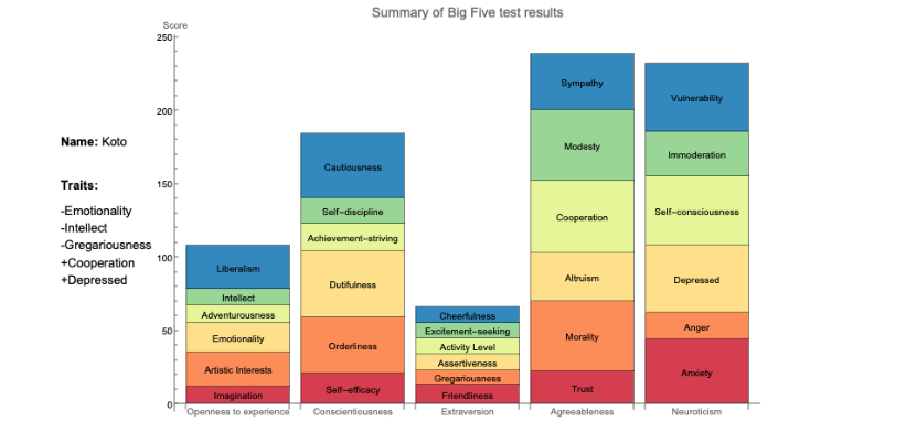 You tend to be reserved and cautious around others. You find it difficult to make friends quickly, and you may not openly show positive feelings. You often keep to yourself and may be perceived as distant or reserved. |