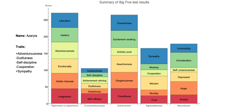 | | You genuinely like other people and openly demonstrate positive feelings toward others. You make friends quickly and it is easy for you to form close, intimate relationships. You reach out to others and are not perceived as distant or reserved. |