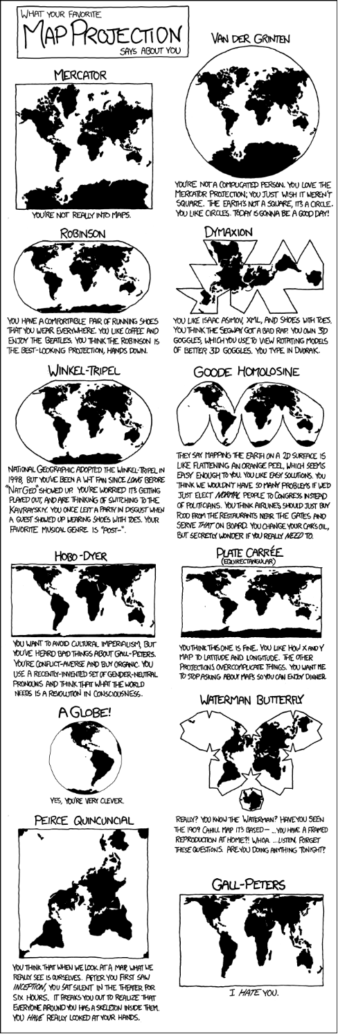 For a better understanding of GEO Projections, take a look at this funny infographic below, this is the inspiration for this post: