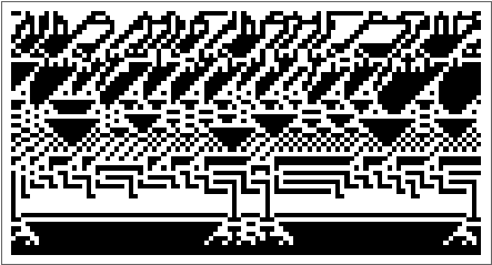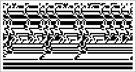 i=0;evolved=Module[{depth=depthSetting,cut=12,initRule=31(*RandomInteger[{0,Integer[]}]*)(*0*),initCond={{1}},ru,fitness,data},SeedRandom[1];evo=NestList[CompoundExpression[(*Incrementthecounter:*)i++,(*Mutatetheruleinputasthefirstargument:*)ru=mutateRule[First[#]],(*TeststhefitnessoftheCAuptothenumberofstepsdefinedbycut:*)fitness=testFitness[ru,cut,initCond],If[fitness<=Last[#],{ru,fitness},#]]&,{{initRule,2,{1,1}},∞},depth];evo=Rest[First/@SplitBy[evo,Last]];Map[CompoundExpression[data=CellularAutomaton[First[#],{initCond,0},{{{cut}}}],ArrayPlot[data,ColorRules->{0White,1Black},ImageSize->{Automatic,26Sqrt[Length[data]+1]},Mesh->True,MeshStyle->Opacity[.1]]]&,evo]];%//If[Length[#]>0,ListAnimate[#],#]&